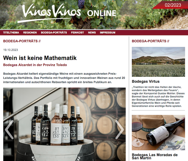 In der neuen Herbstausgabe von Vinos Vinos finden Sie etwa einen lesenswerten Beitrag von David Schwarzwälder über die vielen Gesichter des "Neuen Spanien" sowie drei Portraits, die ich über die Weingüter Virtus (Ribera del Duero), Las Moradas (Gredos) und Alcardet (Toledo) geschrieben habe. |